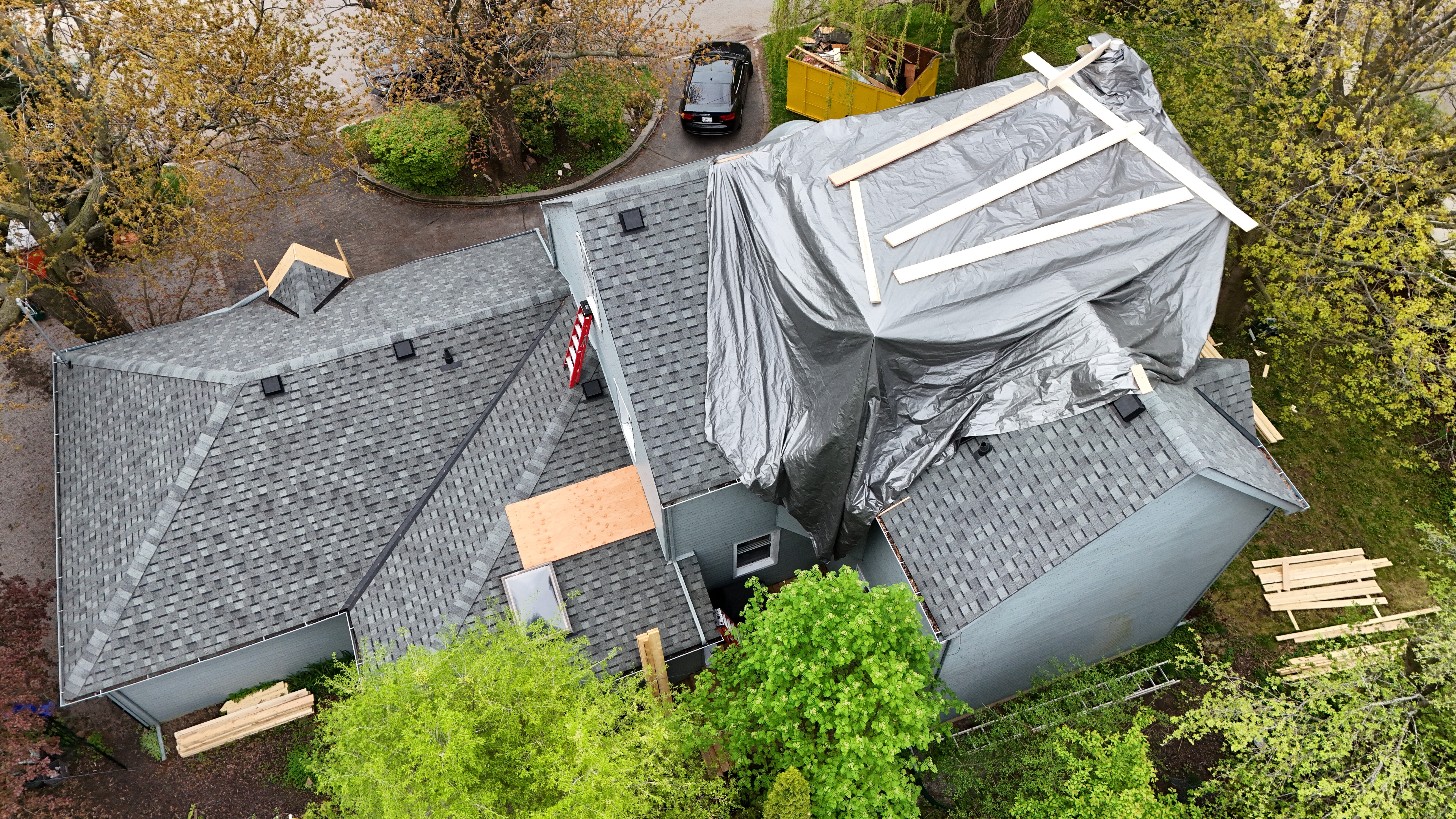 Storm-hit homes in Rexdale and The Beaches need immediate coverage while waiting for insurance adjusters. A tree branch through your roof or torn-off shingles expose your attic to rain and wind. Every hour without protection adds to interior damage and repair costs.